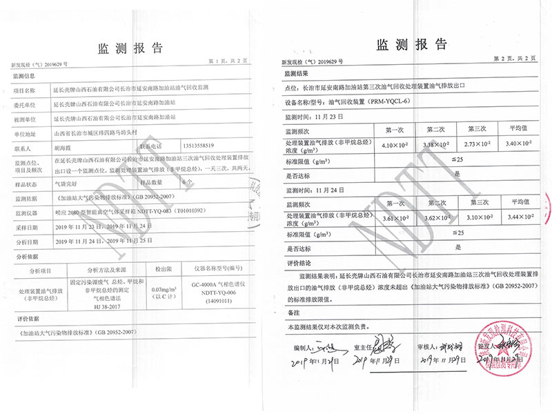 延長殼牌山西石油有限公司長治市延安南路加油站 三次油氣回收處理裝置竣工驗收報告公示